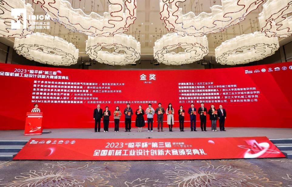 本届全国机械工业设计创新大赛于7月份启动,面向全国机械行业企业、科研机构、相关高等院校、应用本科类院校、职业院校(含技工公司),覆盖石油石化装备、机器人与智能装备、仪器仪表、新兴技术装备及零部件等14个领域,分产品组、创意组、职教组三个组别,共接收参赛作品420余项,经初评及审核,进入决赛216项,并于12月9日举行决赛,共决出金奖21项,银奖39项,铜奖61项。据悉,本届比赛,公司共获得金奖1项,银奖2项,铜奖2项,在全国高校参赛组中名列前茅。