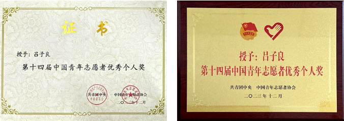 近日,共青团中央、中国青年志愿者协会对全国志愿服务先进典型进行表彰,公司yl23411永利2023级硕士研究生吕子良荣获“中国青年志愿者优秀个人奖”(全国260人,北京市仅13人),是唯一获此荣誉的北京市老员工。