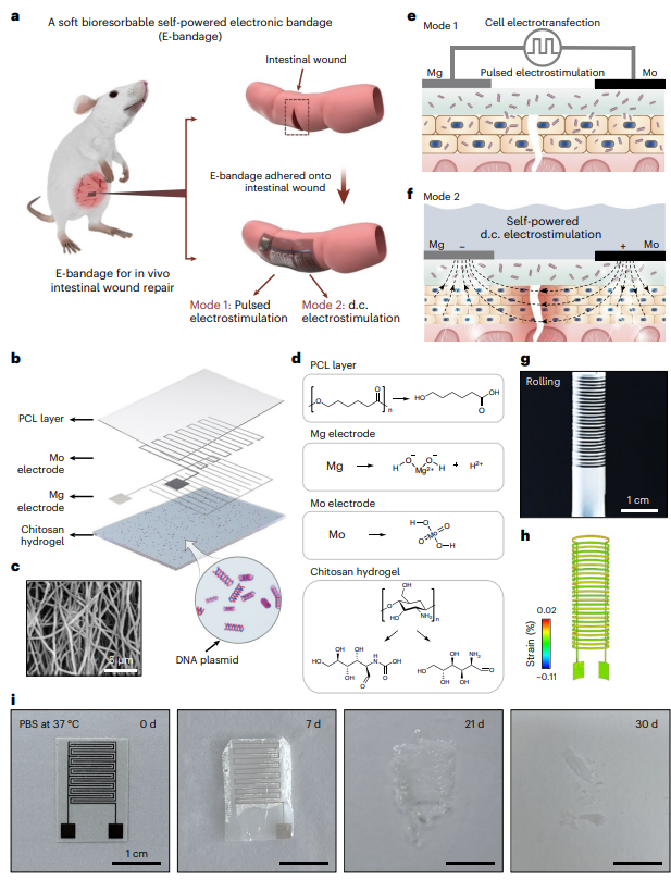 全植入式,可生物降解,自供电双电刺激电子绷带促进肠道创面愈合