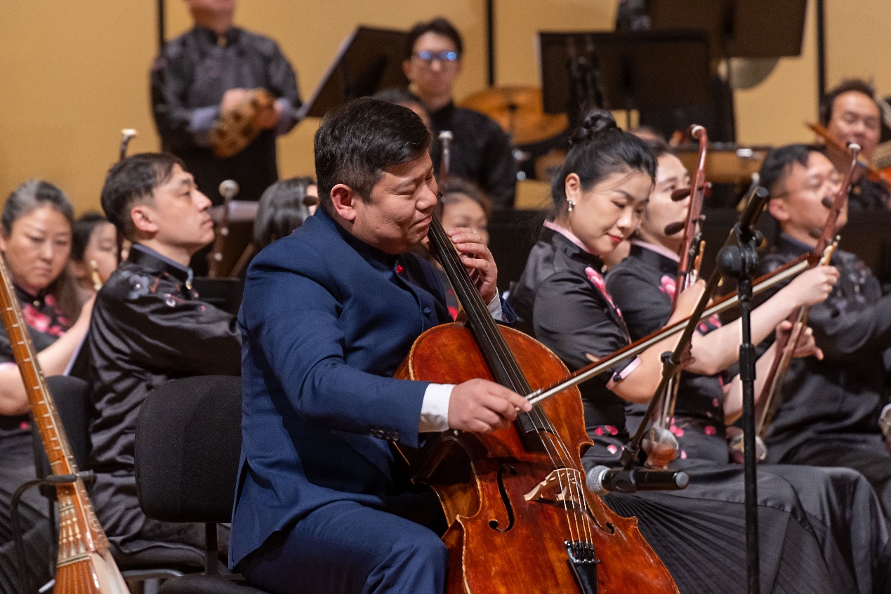 琵琶、柳琴与乐队的《楼兰意象》,大提琴、筝与乐队的《草原赞歌》,取材自巴渝地区的民族管弦乐组曲《太阳颂》都有很强的地域风格,在音乐中描绘不同的风景画面,展现了各地风韵与文化气质,传递了深邃的情感内涵。打击乐《锦鸡出山》展现了土家人吉祥鸟锦鸡的生活场景,打溜子四件铜制乐器的合奏旋律婉转、节奏明快、表现力极强,二胡协奏曲《长城随想》带有浓厚的北方民族韵味,巧妙地把多方面的音调素材自然糅合在一起,浑融一体,风格天成。返场曲目《花好月圆》,更是将现场气氛推向高潮,现场观众的掌声久久不绝,不仅表达对乐团精湛表演的喜爱与赞赏,更深深传递着对祖国大好河山的无限热爱与赤诚之情。