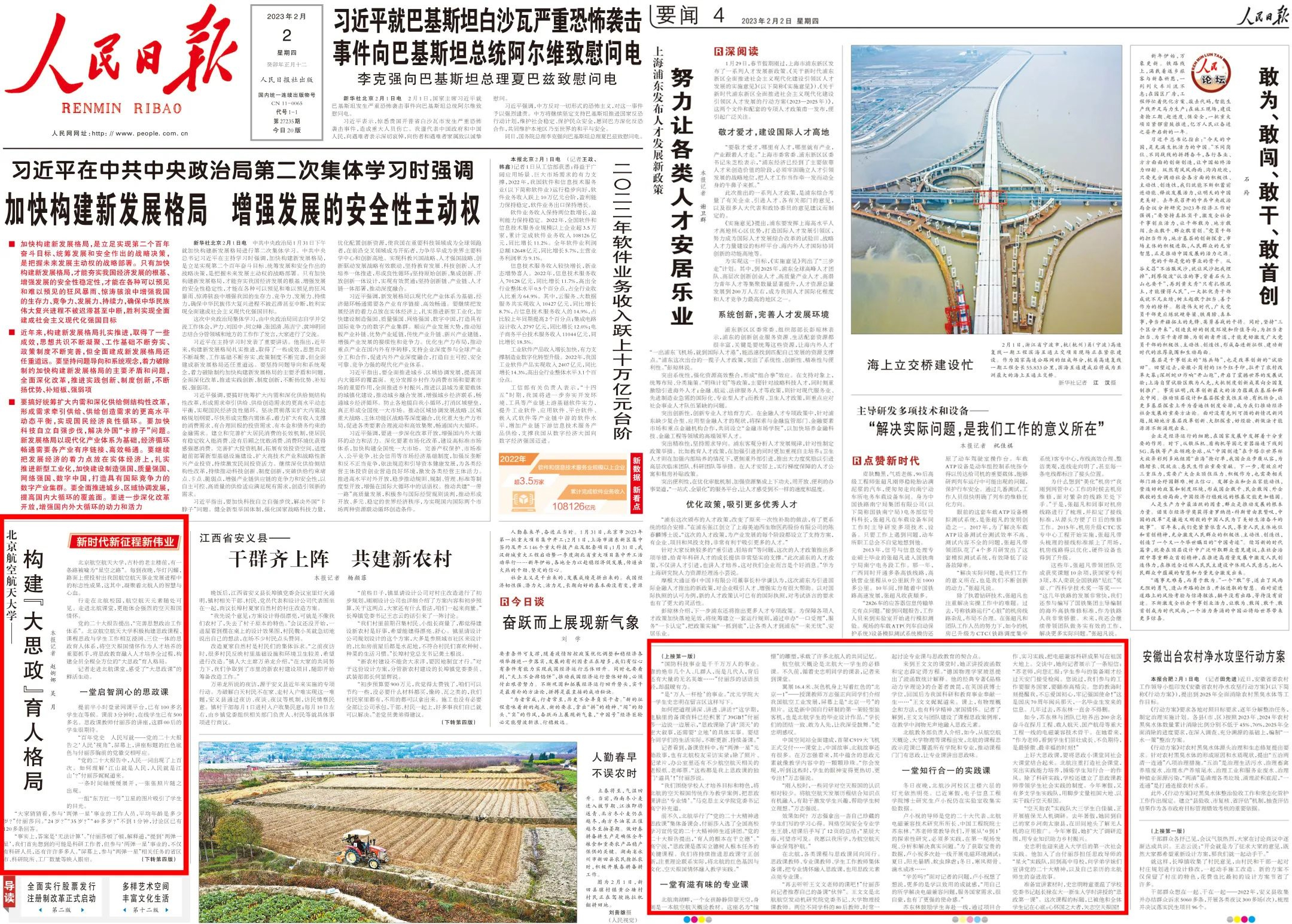 要扎实推进思政课程与课程思政协同育人,就要将思政教育与学科特色、专业特色、课程特色等深度融合,将科研、教学、人才、事件等蕴含的思政元素动态融入专业课程教学。自2020年秋季学期试点开设《习近平新时代中国特色社会主义思想概论》课以来,公司探索将以“空天报国”为内核的北航精神融入课程教学,设置了“科技创新与强国使命”专题,邀请院士团队参与授课。“太震撼了!”北航知行书院员工李骄娴表示,“这样的思政课完全超出了我的预期。”这样的教学改革表明,专业课中的思政元素不仅可以为专业课所用,也可以成为思政课的鲜活素材。公司持续加大课程思政建设投入,深化课程思政与一流课程一体化建设,先后打造136门校级课程思政示范课,实现公司全覆盖,出版《yl23411永利官网课程思政优秀案例汇编(航空航天篇)》,提升教师课程思政建设能力,使课程思政元素成为专业教学的兴奋点和创新点。相关做法两次获《中国教育报》头版头条报道,2023年2月获《人民日报》头版报道。