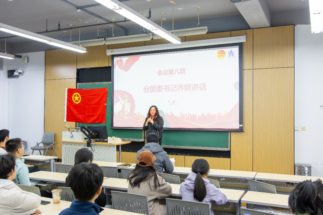 随后,优秀团员代表张烁同学发言,鼓励大家树立正确的价值观,勇于创新,将个人理想与国家发展结合,传承北航“空天报国”精神,为实现中国式现代化、复兴中华民族而努力奋斗。