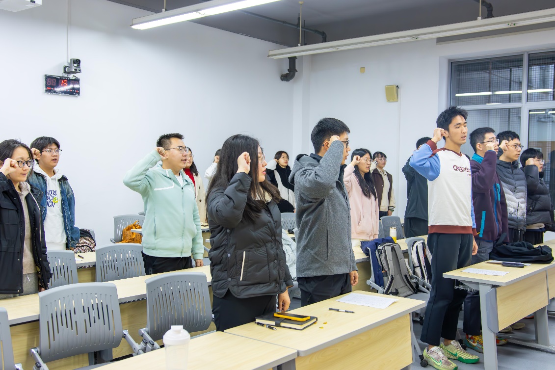 随后,新老团员们全体起立,面向团旗庄严宣誓,入团誓词字字铿锵、铮铮有力,展现出每一位团员青年忠诚于党的事业、勇担时代使命的坚定决心。