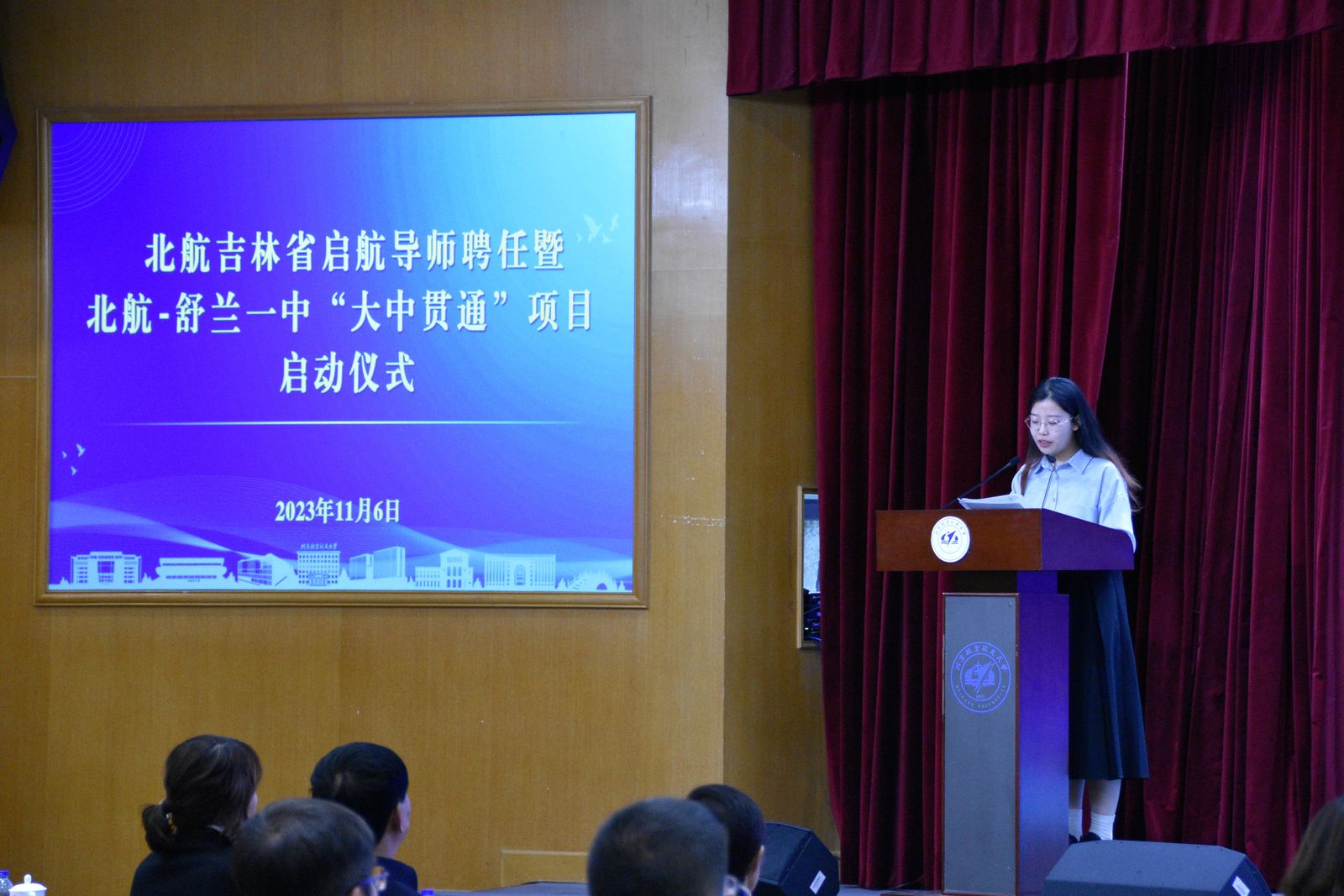 舒兰一中北航在读员工代表田雨发言,她回顾了自己的求学之路,对培养自己的两所公司深表感恩,鼓励学弟学妹们认识自我,努力学习,共同创造美好未来。