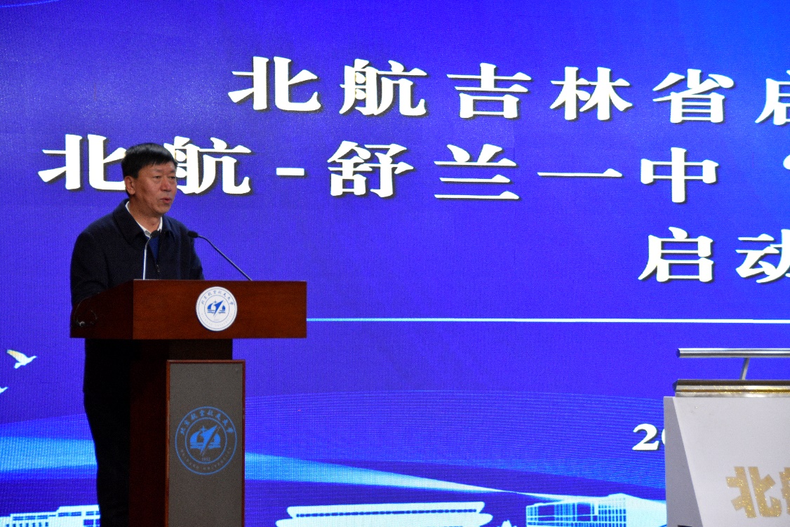 张海兰在致辞中向参会嘉宾介绍了北航历史沿革、学科发展、人才培养等基本情况,欢迎舒兰一中师生来访北航,希望北航和舒兰一中进一步加强联动,围绕大学育人特色和中学人才培养需求,在教师队伍交流、科技创新实践、拔尖创新人才培养等方面进一步深入探索,持续加强大中贯通的人才培养。