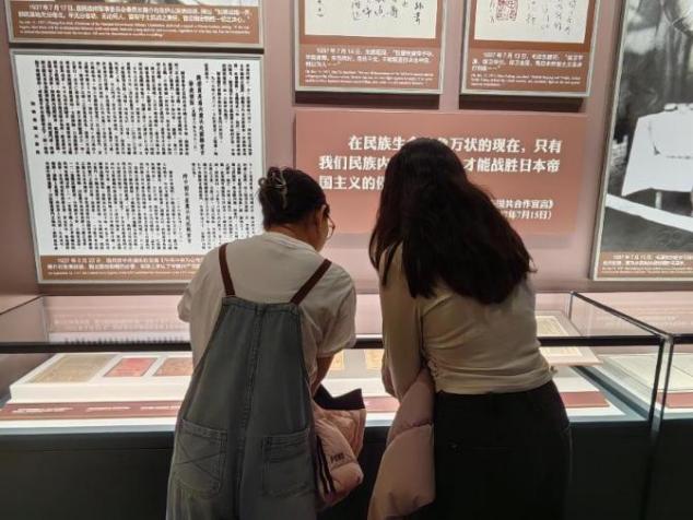 参观过程中,同学们怀着庄重肃穆的心情依次参观各展区,近距离瞻仰文物史料。锈迹斑斑的大刀、褪色的军装、发黄的家书,无声诉说着先烈们的不屈抗争;南京大屠杀遇难者名单墙、强掳中国劳工史实陈列等,让大家深切感受到战争的残酷与和平的珍贵。